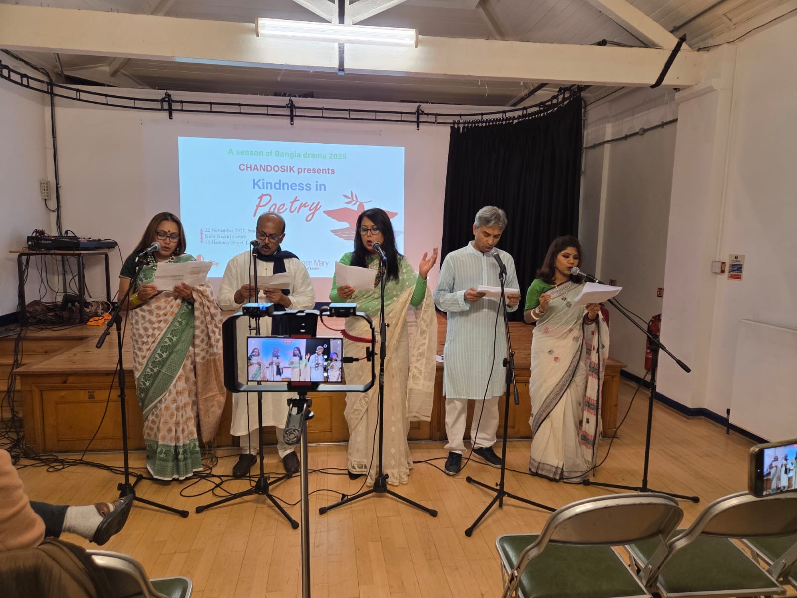 সম্প্রতি লন্ডনে সিজন অব বাংলা ড্রামায় ছান্দসিক উপস্থাপন করলো কাইন্ডনেস ইন পোয়েট্রি। পাশাপাশি গান এবং কবিতায় উচ্চারিত হলো, মানুষের কথা। কাব্য ছন্দে যেমন ভালোবাসা, মায়া মমতার দ্যুতি ছড়ান বাচিক শিল্পীরা, তেমনই আলোচকদের কথায় উঠে এলো সাম্যের বারতা।