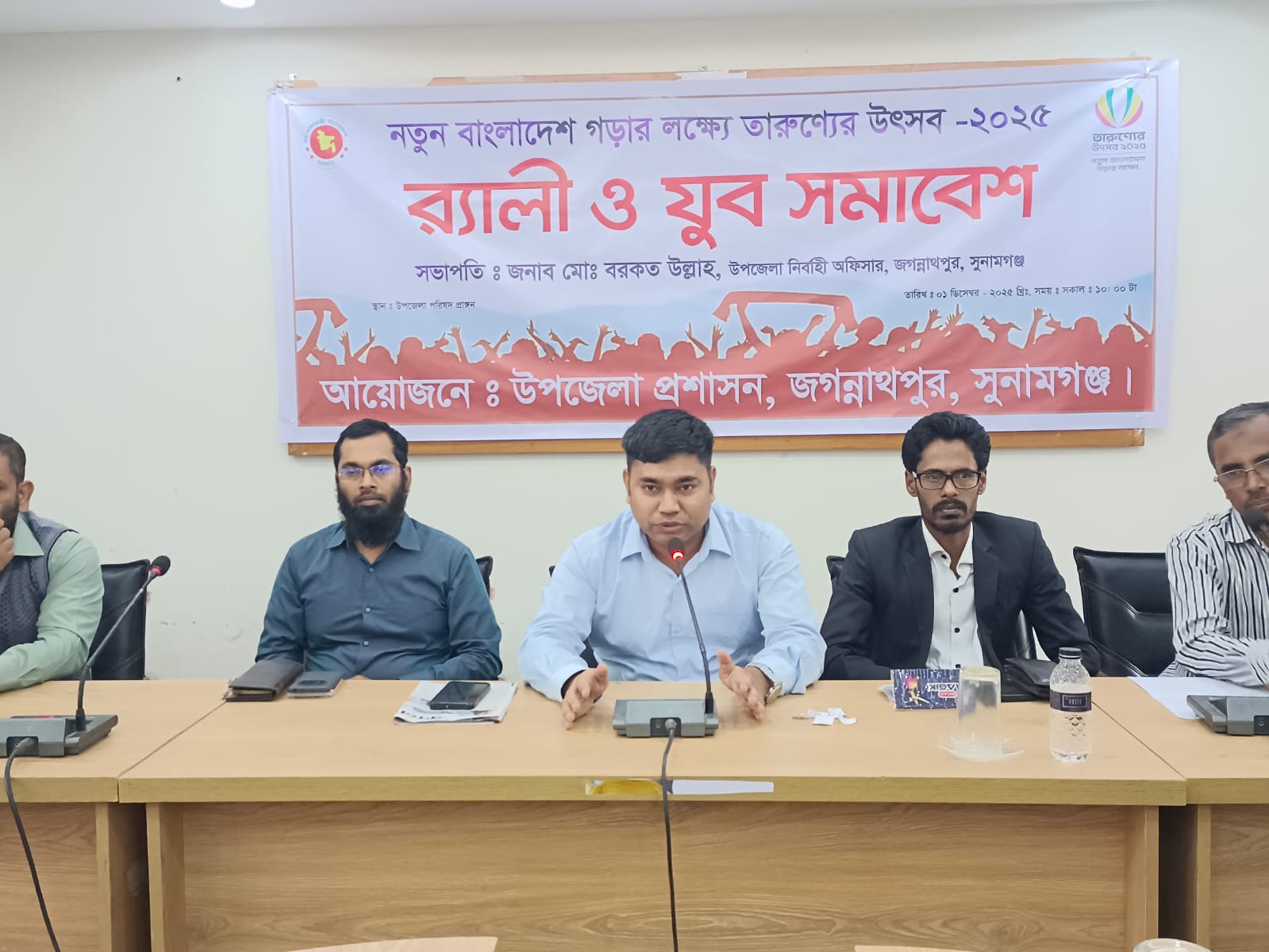 সুনামগঞ্জের জগন্নাথপুরে তারুণ্যের উৎসব ২০২৫ পালন করা হয়েছে। ১লা ডিসেম্বর সোমবার বিকাল ৩টায় উপজেলা প্রশাসনের আয়োজনে র্যালী, আলোচনাসভা, পুরস্কার বিতরণ ও মনোজ্ঞ সাংস্কৃতিক অনুষ্ঠান অনুষ্ঠিত হয়েছে।